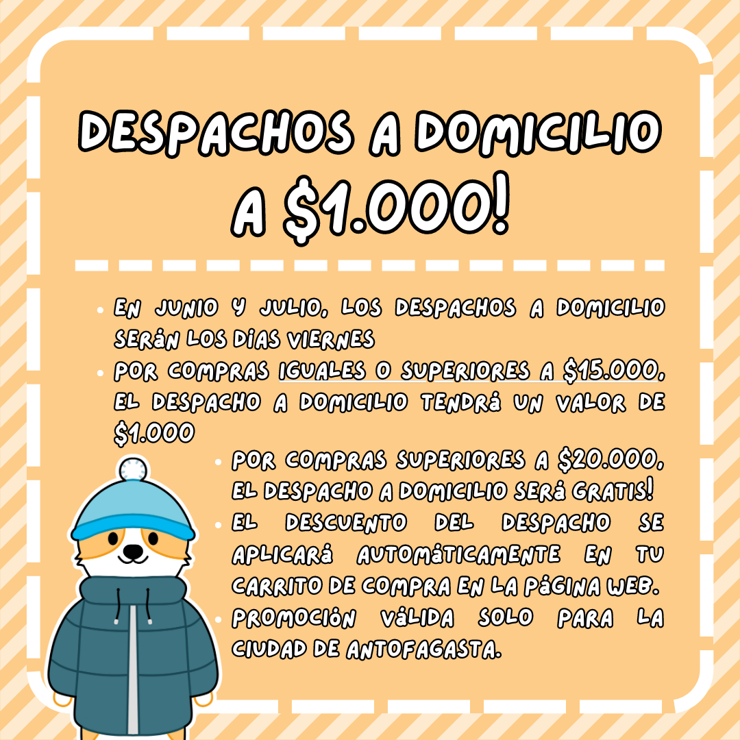 Por compras iguales o superiores a $15.000, el valor del despacho a domicilio en Antofagasta será de $1.000